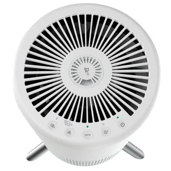 Ein eleganter runder Luftreinigermit Luftqualitätssensor und Aromafach.