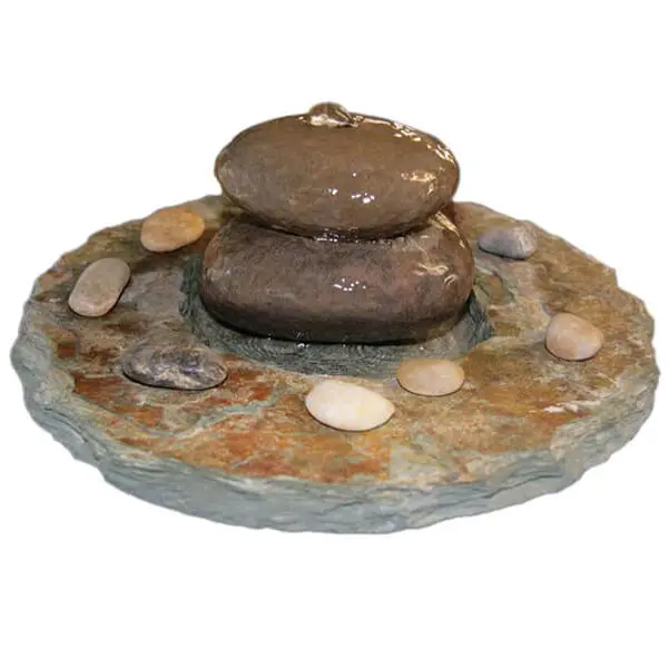 mit Wasser fördert diese Flusskiesel-Schiefer-Kombination den Fluss der